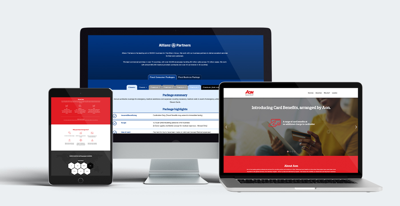 AonAon, working with Visa, offer insurance packages for credit cards, selling to financial institutions across the UK, Germany, Italy, Spain, Poland and Turkey. Our client Aon wanted a tool that could be used as a sales aid for marketing purposes – more than just a pdf brochure.